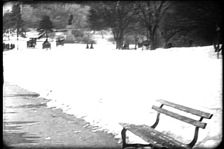 “Politician’s Love Story,” 1909, was a film Griffith and Bitzer made by the seats of their pants after an overnight snow and ice storm blanketed New York and, of course the site that made a convenient “location shoot,” Central Park.  Although the first half of this short film takes place indoors and is largely a pretext for the visual charms of the remainder of the film, the memorable second half was shot in the park, and (judging by shadows, taking into account the time of the year, January, and the direction of the sun in the park) photographed between late morning and late afternoon.