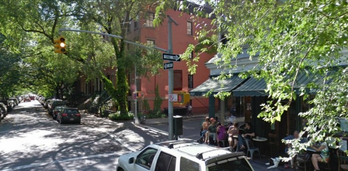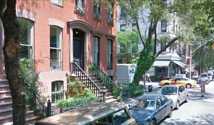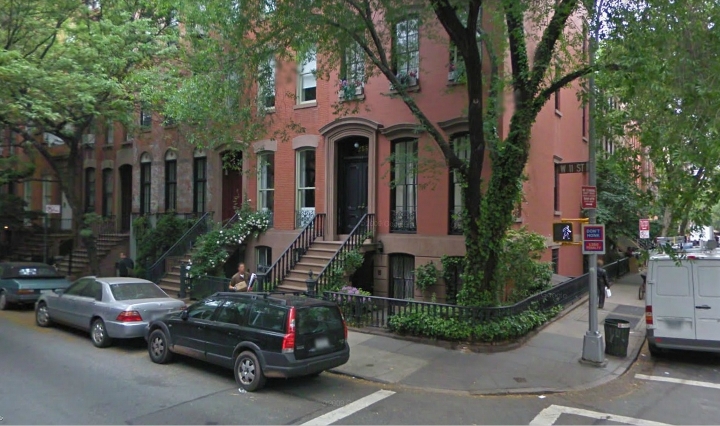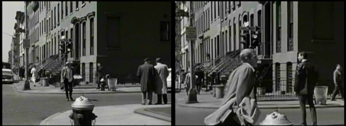 Also fascinating, if not as poignant as the ghostly Washington Market site, are recent images of the Greenwich Village neighborhood where Rocky’s stripper girlfriend lived in the the film, contrasted with still frames from the film.  This area of the West Village, around the intersection of West 4th Street and West 11th Street has lost whatever grittiness it may have had in 1963, and gained quite a few tree-lined sidewalks as well.  Today, the greenery almost obscures the corner townhouse, and the cigar shop on the opposite corner of 4th St is now a cafe.  (Recent photos from GoogleMaps Streetview.)