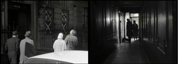 The current headquarters of Local 802 of the American Federation of Musicians is 322 W. 48th St. (between Eighth and Ninth Avenues). This particular building is a latter-19th century structure with a first floor facade that appears to have been refinished in the 1970’s or 80’s. I don’t know if the union hall/headquarters was at this address in 1962. The film doesn’t give us much of a glimpse of the exterior of the building, although the entrance is similar to the one at 322 W 48th.
