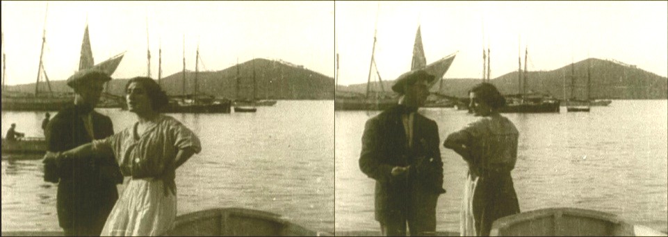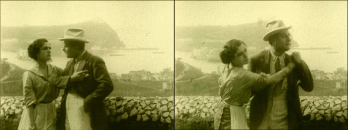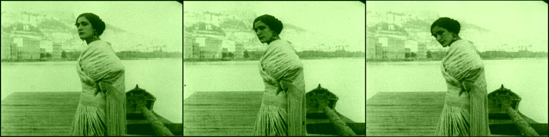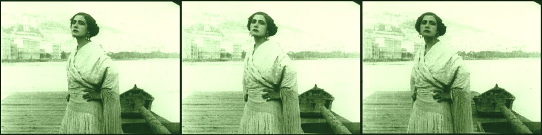 The unspoiled natural beauty of the Bay of Naples, 1914, becomes little more than a scenic backdrop as a fade-in reveals the imposing presence of diva Francesca Bertini as “Assunta” in the opening shot of the film adaptation of Salvatore Di Giacomo’s Assunta Spina (Caesar-Film, 1914), directed by and starring Francesca Bertini and Gustavo Serena.