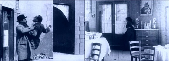 In the opening shot of Assunta Spina, we are introduced to Assunta (Francesca Bertini) by way of a glimpse of her in a later scene on the docks of the Bay of Naples, waiting for her boyfriend, Michele.