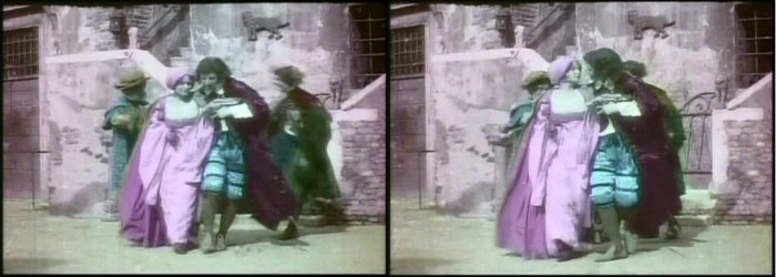 Francesca Bertini portrays Jessica, daughter of Shylock the lawyer, in this beautiful hand-tinted film which, again, survives only as an incomplete “fragment” of the original one-reel film.
