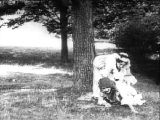 [Mary Pickford, writing five decades after Willful Peggy, may not have had perfect recall of the episode — it appears that Mary stumbled and fell as she was being chased by Kate Bruce around the apple tree. No matter. Another five decades after Sunshine and Shadow, the anecdote brings life and warmth to a tale of movie-making now more than a century in the past.]
