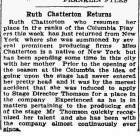 In an interview with the Chicago Daily Tribune a year after the Times article, she explained that a friend of her mother had seen her on stage in Washington. When mother Lilian wrote to Ruth for an explanation, Ruth told her and asked her permisssion to take a job with the Columbia company. Mother Lilian approved.