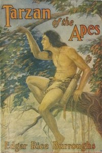 Tarzan and the Golden Lion was a photoplay edition from 1927, but the original film Tarzan, Tarzan of the Apes (1918), starring the estimable Elmo Lincoln as Tarzan, and based upon the first Tarzan book by Burroughs (1914), was not given a photoplay edition tie-in.  Some of the most spectacular dust jacket artwork in publishing history was on display in the Tarzan series between 1914 and 1949.  (Check out the examples at AbeBooks.)  On the left, Edgar Rice Burroughs, Tarzan and the Golden Lion, Second photoplay edition, Grosset and Dunlap, 1929, In Good condition with Fair dust jacket ($150, AbeBooks); at right, Edgar Rice Burroughs, Tarzan of the Apes, later reprint edition, Grosset and Dunlap, 1927, Fine condition with Very Good dust jacket ($750, AbeBooks).
