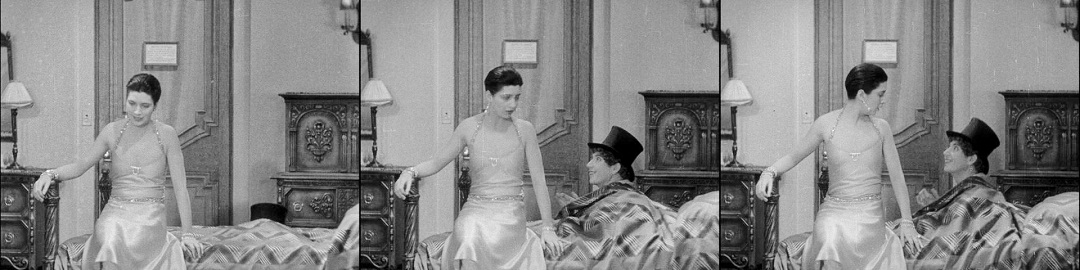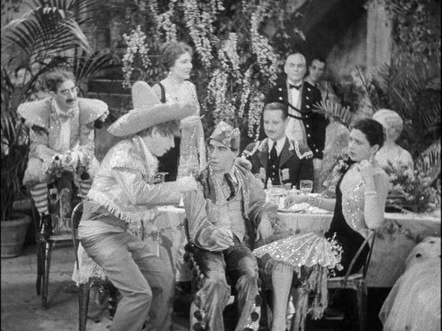 Only once (at right) does Groucho get his mitts on Kay Francis, briefly in the “revolving rooms” sequence. It is one of those physical set-pieces that can be found in all of their films, but this one probably worked better live on stage since it requires two rooms to be visible throughout, and the distance is too much to be as effective on the screen.