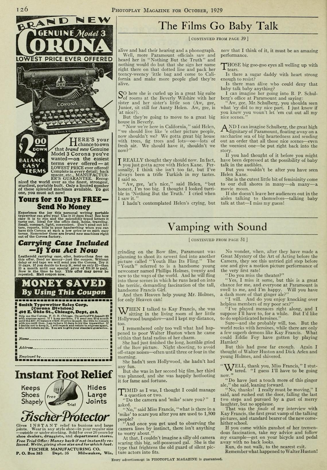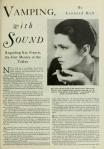 Kay Francis, as the snaky secretary in ‘Gentlemen of the Press,’ had given one of the most astonishing performances in the history of motion pictures. . . She appeared in a blaze of glory as the first great vamp of the audible pictures, using a type of male-killing technique that is perfection itself for the new form of entertainment. . . As the first great practitioner of this new school, Kay Francis stands alone. . . Miss Francis will occupy a sizeable place in the yet unwritten history of the talkies.” Leonard Hall, “Vamping with Sound,” Photoplay Magazine, October 1929.