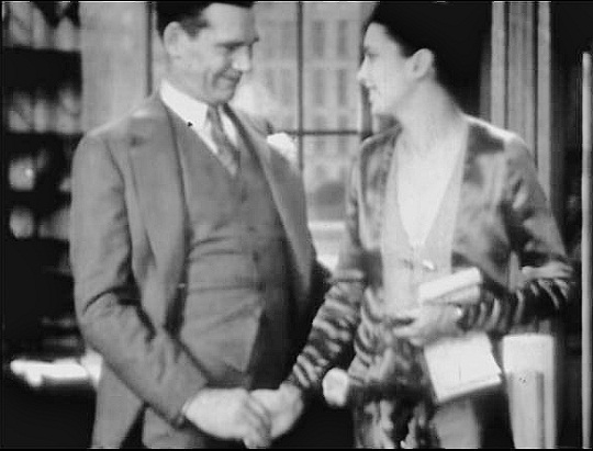 Mordaunt Hall put his finger on something that is even today quite obvious to any viewer of the Gentlemen of the Press. The pacing is poor, and while one is tempted to blame the editing, it is the director who is at fault for having the actors pause interminably between lines, pauses that slow what should have been a fast-talking, sprightly newspaper yarn (as apparently the play was). While the slow pace is acceptable in the dramatic scenes between two characters, the scenes with multiple actors tend to drag — the press conference scene in particular as we wait for the reporters to make and respond to wise-cracks.