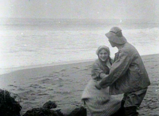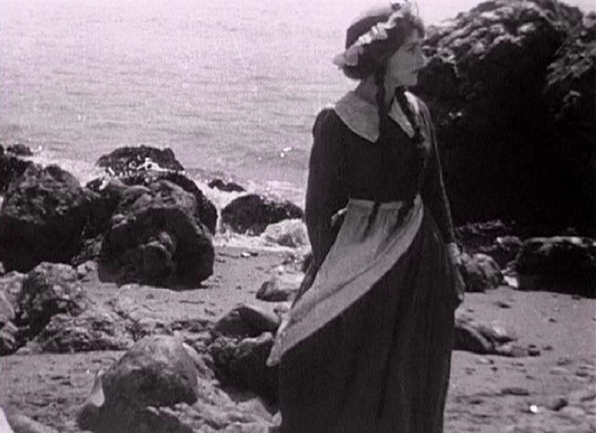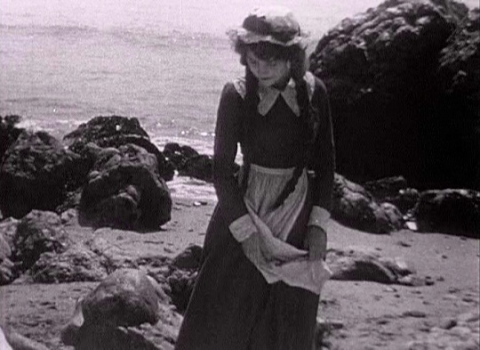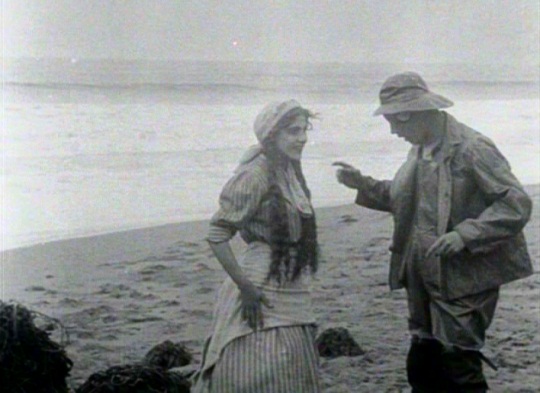 think is a special chemistry, and arguably stronger than we see between any other pairing of actor and actress in Griffith’s early Biographs. It was a chemistry that remained as long as Johnson was with Biograph — it was still abundantly visible two years later in the wonderful series of shots on the beach at Santa Monica in “The Unchanging Sea” from the 1910 Biograph California trip. Why we don’t see much more of this pairing between those two films and those two years is likely due to a one, two, three punch — the hiring of Florence Lawrence