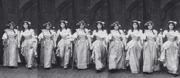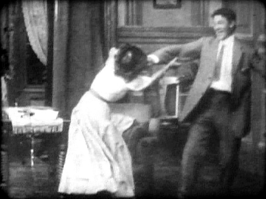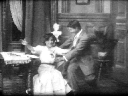 However, as can be detected in the series of shots above, from A Calamitous Elopement, made only three weeks after “Dollie,” (and where it is obvious that Griffith was quickly grasping the essentials and beyond of filmmaking), Linda Arvidson and Arthur Johnson had what I