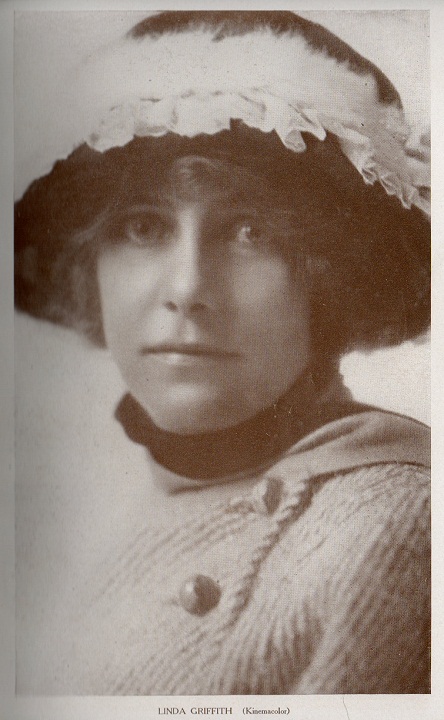 “Linda” was the director’s wife of three years, Linda Arvidson Griffith. The daughter of Swedish immigrants, she was born in San Francisco in 1879 (most sources and bios give 1884 as her birth year, and the 1920 U.S. census records her age as 39, but in several international passenger records Arvidson reports 1879 as her birth year). Linda had worked since her teens as an actress in local theater, and had survived that city’s quake after being rolled out of bed in the apartment she shared with her sister in the wee hours of April 18, 1906.