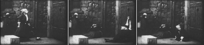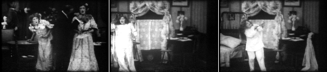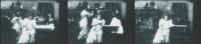 The standardized acting techniques employed in classic stage melodrama included broad arm gestures, head turns and extreme facial contortions — what today we would call “body language,” designed to signal or represent a character’s emotions to the audience. This was what she knew, what she had learned from her years of experience in live melodrama, and it was the type of theater and the type of stage performance best known to general audiences of the time.