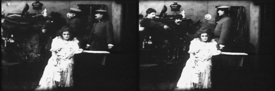 While working with Griffith at Biograph, she rapidly developed the skill for subtle, understated acting for the motion picture camera, a method of acting sometimes labelled “verisimilitude,” as in a literal translation from its Latin roots, “same-as-truth,” essentially “life-like.” On stage this style had become the preferred method for serious artists in dramatic literature of the theater in the late 19th century. In her first lead role in a film with Biograph, “Betrayed by a Handprint,” in August of 1908, she generally resorts to the obvious gestures then considered “correct” for acting in live melodrama.