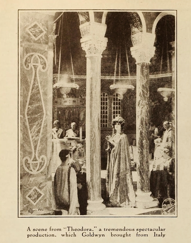 “‘Theodora’ is another massive Italian production on the order of ‘Cabiria,’ only more elaborate. Imported by [Samuel] Goldwyn and current at the Astor, New York. [Goldwyn] spent $50,000 in a preliminary city advertising campaign before it opened . . . It has been a sellout right along. Tuesday night, Charlie Chaplin occupied a box, and the appearance was widely heralded. By 8 o’clock, the box office stopped selling standing room.