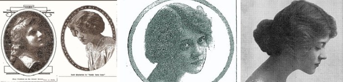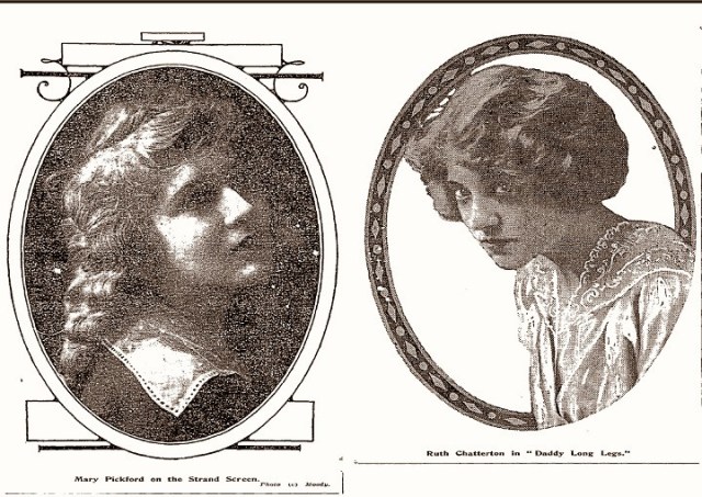 Twin tyros of theater and cinema: Mary Pickford, 23, and Ruth Chatterton, 22 (she would turn 23 in December), appeared in separate venues the same week in New York City. On Labor Day, September 6, 1915, Pickford’s latest work for Adolf Zukor and Famous Players-Lasky premiered at The Strand Theater: Esmeralda, a film based upon the play by Frances Hodgson Burnett and William Gillette, and adapted for the screen by the legendary screenwriter Frances Marion, who became Mary’s close friend. Ruth Chatterton opened the final season of Daddy Long-Legs with a Labor Day matinée at The Gaiety. A national tour would follow. These photo ad inserts appeared as seen above, side-by-side, in The Sunday New York Times, September 5, 1915. (I swear I found this months after I wrote of the Pickford-Chatterton connection in Part One of this series of articles on Ruth Chatterton.)