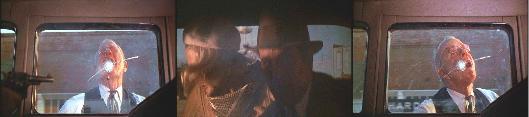 The fun and cameraderie shared by sweetheart criminals Bonnie Parker and Clyde Barrow (Faye Dunaway and Warren Beatty) begins to go south fast when Clyde kills a bank manager (the first killing in the film) trying to stop their getaway.