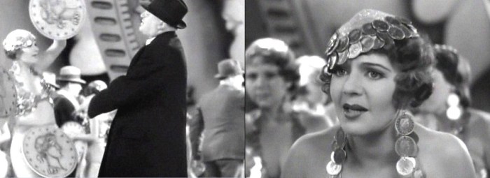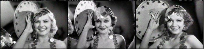 Bonnie is inspired to arrange her far less showy “coinage” ala “Gold Diggers,” as she warbles “We’re in the Money,” and Below, attempts a few halting dance moves, poses that she enhances with skillful use of cigarette and smoking nostrils . . .