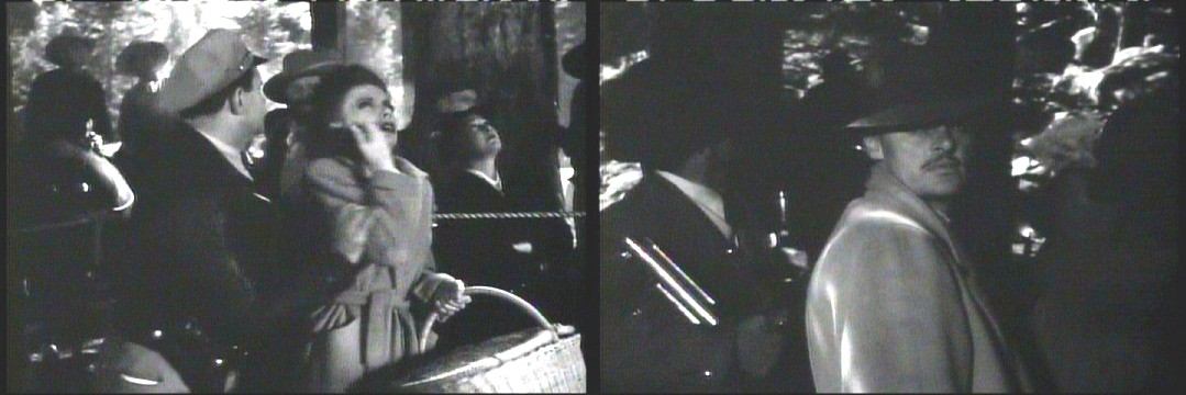 Marie’s sad reverie is interrupted — from a loudspeaker she hears the name “Roy Earle” “fugitive” and news of a massive manhunt in which the forces of the law have surrounded “Mad Dog Earle” high in the Sierras.